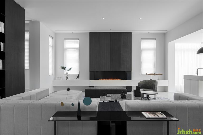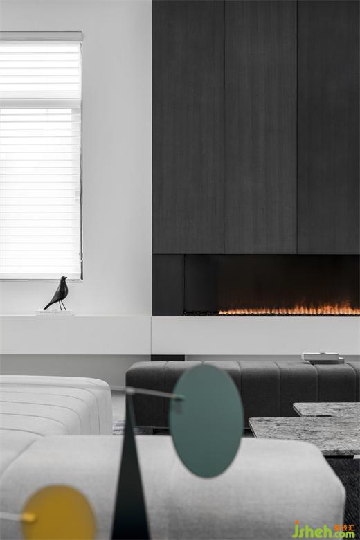 壁爐燈給黑白為主色調(diào)的空間