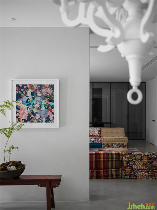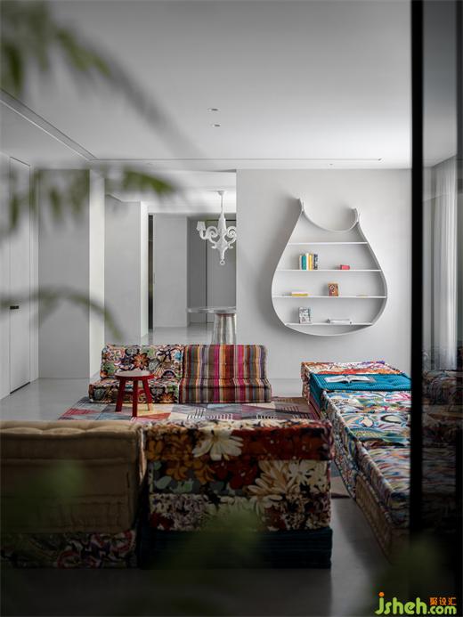 別墅裝飾二樓客廳選擇了意大利產(chǎn),由泰國設(shè)計師Hans Hopfer設(shè)計的可自由組合的”麻將“,你可以把”麻將“并成一組沙發(fā),坐在上面喝個下午茶,亦可以把它平鋪?zhàn)鳛橐粡埓?,睡個午覺。沙發(fā)布料的材質(zhì)花色靈感來源于日本和服,將多元文化融合的概念體現(xiàn)得淋漓盡致。