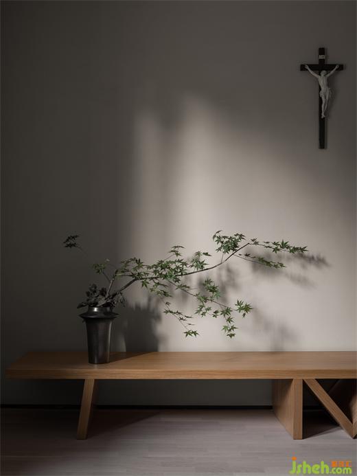 木色的的長桌上擺著造型獨(dú)特的枝條,葉影投在墻面,絕美光影營造了東方的禪意與寧靜,而墻面上掛著的十字架又代表著西方的文化內(nèi)涵,別墅裝飾兩者之間仿佛是跨越了國界進(jìn)行著精神內(nèi)核的交流。