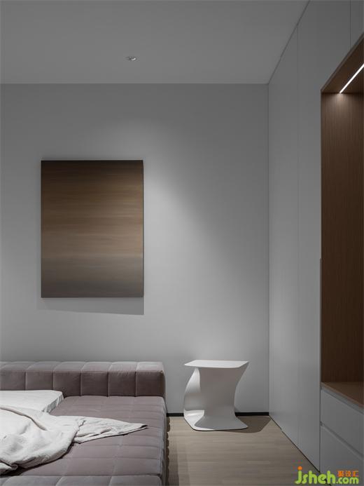 臥室以黑白灰為主色調(diào),配合恰到好處的照明,別墅裝飾營造寧靜安定和舒適的氛圍。所有的裝飾盡可能去除,回到身體的觸覺感知,讓睡眠更加愜意放松。