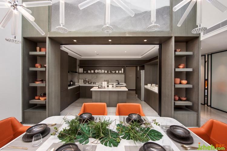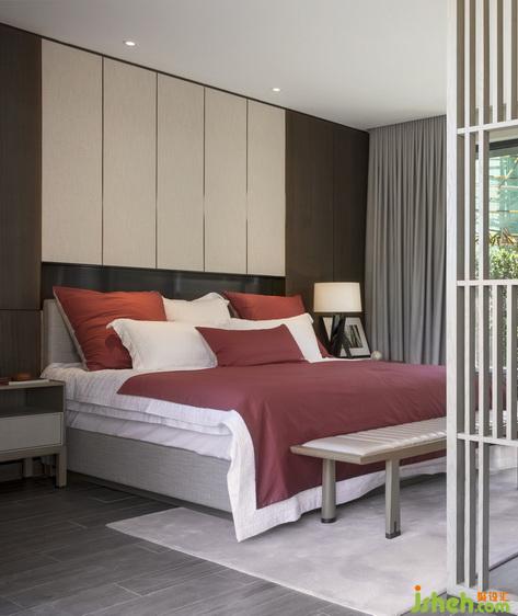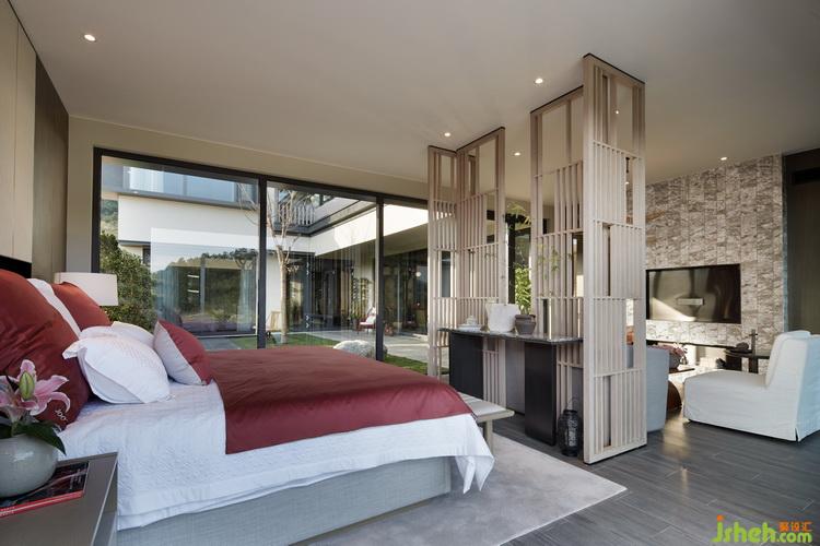 The distance mountain view and nearby courtyard embrace the master bedroom in nature. The balanced and symmetrical wooden screen, dignified bedding, exquisite casereveals thegenerous gift of nature with a solemn gift of humanity.Dynamicandfashion metal straw hat lamp and streamlined shape of the coffee table make are-interpretation of the nature of the material to interpret and recreatenature through the contrast and conversion.