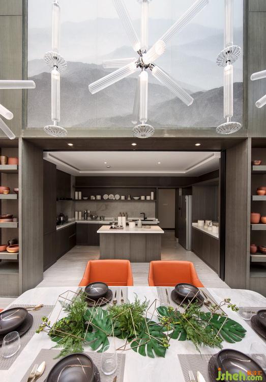 遠(yuǎn)處的山景和近處的庭院將主人房相擁于自然之間,均衡對(duì)稱的木質(zhì)屏風(fēng),端莊大氣的床品,精致的案幾,室內(nèi)設(shè)計(jì)師以莊重的人文之禮,呈獻(xiàn)自然的慷慨賜予。動(dòng)感時(shí)尚的金屬草帽燈和流線造型的茶幾,通過對(duì)比與轉(zhuǎn)換,重新解讀物料的本質(zhì),演繹與再造自然。