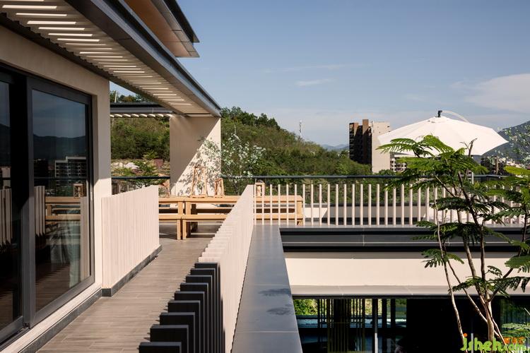 With the least interference of utensils, the bathroom achieves the maximum bearing of the beauty of nature. In the blurred light and shadow, the mirror includes the landscape scenery into the room, creating a quiet and leisurely holiday experience.