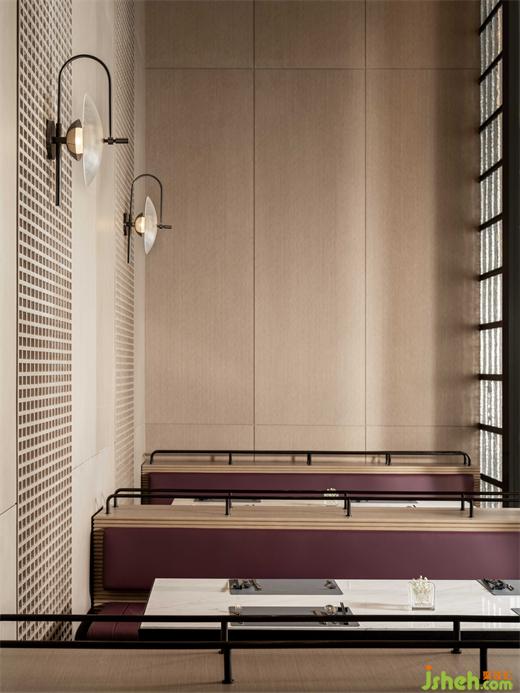 拉絲不銹鋼框架座椅與大理石邊桌訴諸理性、優(yōu)雅紫色地毯將感性拿捏。每個模塊都有著獨特而豐富的細節(jié),賦予大堂吧無限社交屬性。于此間,或與友人樂,或遇見自己。