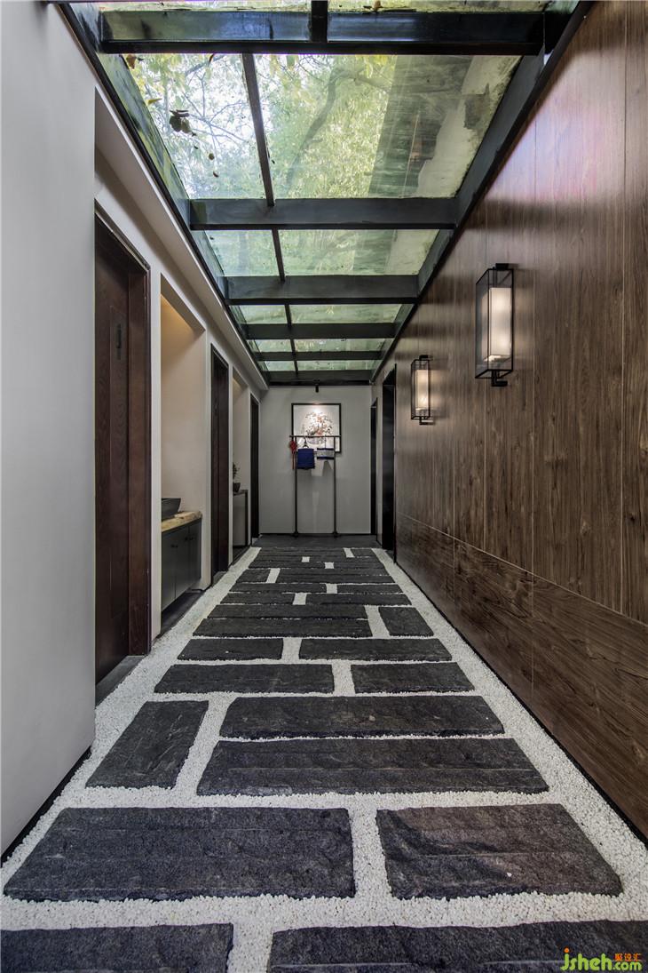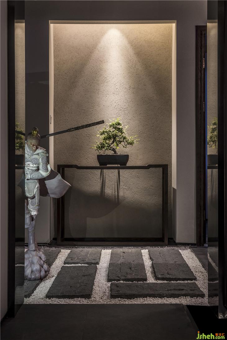 入口走道以白墻灰磚取拙樸之姿態(tài),斑駁感人的光線落下,讓其中的人獲得“靜謐中探尋”的行走體驗(yàn)?!盎貧w茶本味”理念的融入,也提醒著人們,準(zhǔn)備好迎接那一道茶香。正如作家林清玄所說(shuō),人生需要準(zhǔn)備的,不是昂貴的茶,而是喝茶的心情。