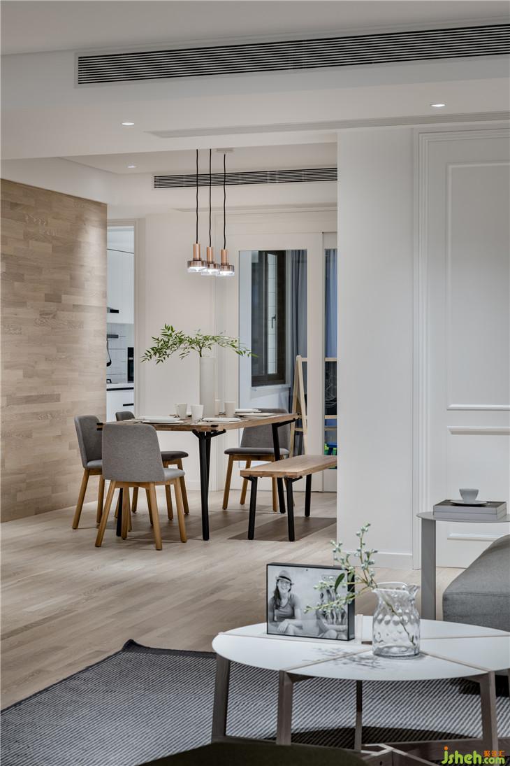 娛樂區(qū)的一側(cè)是廚房,整體以白色為主色調(diào),營造整潔干凈的空間氣質(zhì)。