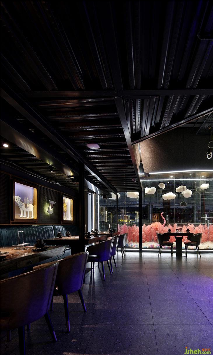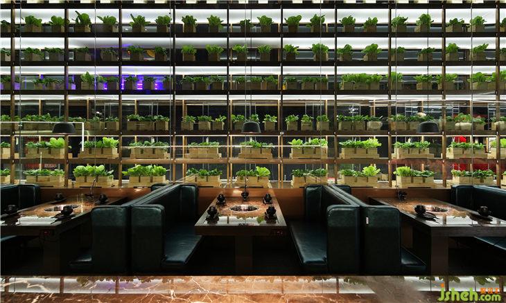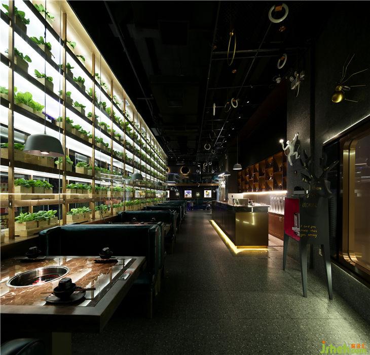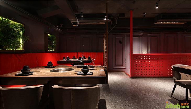 設(shè)計(jì)師設(shè)計(jì)了多個(gè)互動(dòng)打卡區(qū)域,增加了趣味性,同時(shí)還可以吸引更多在店鋪外游走的潛在客群??臻g內(nèi)部,一抹綠色的玻璃幕蔬菜墻與動(dòng)感的燈光與音樂(lè)相互融合,將火鍋與酒吧重新定義。設(shè)計(jì)師將匠心設(shè)計(jì)在選材與配色選取上,曲盡其妙,紅色與墨綠色之間碰撞給人完美的平衡感。