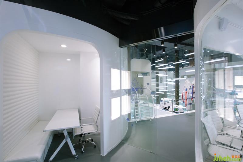 整個教學區(qū)分為火星、木星、土星、金星······,利用弧形曲線將其相連。教室之間使用活動移門連接,寓意溝通之門。以星球開頭字母的裝飾的門把手,別致不失莊重。教室整體通透的玻璃窗設計,可以讓在等候區(qū)的父母,看到教室中孩子學習狀態(tài)。