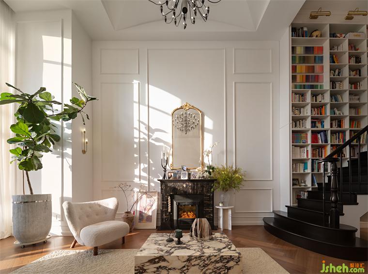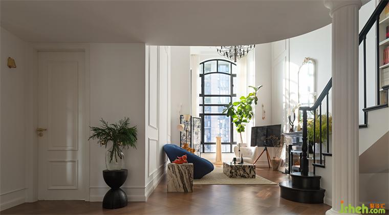 客廳落地大窗向西,夏天時(shí)的太陽剛好被馬路對(duì)面大樓所擋,廣州復(fù)式設(shè)計(jì)到了冬天時(shí)日落方位南移,又能感受夕陽直射的溫暖,命運(yùn)把這些安排得恰到好處。