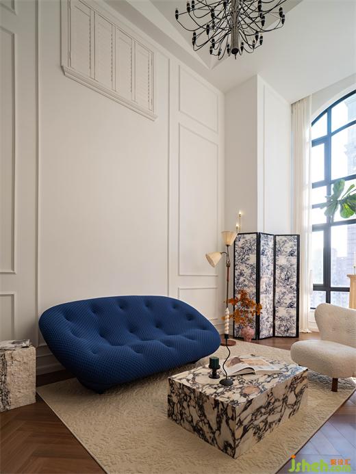 貝殼沙發(fā)上方的百葉折疊窗,其實(shí)那是女孩房的窗戶??梢韵胂螅?dāng)主人在樓下坐躺時(shí),有個(gè)可愛的小女孩伸出頭來打招呼,充滿了童真趣味、濃厚的生活氣息
