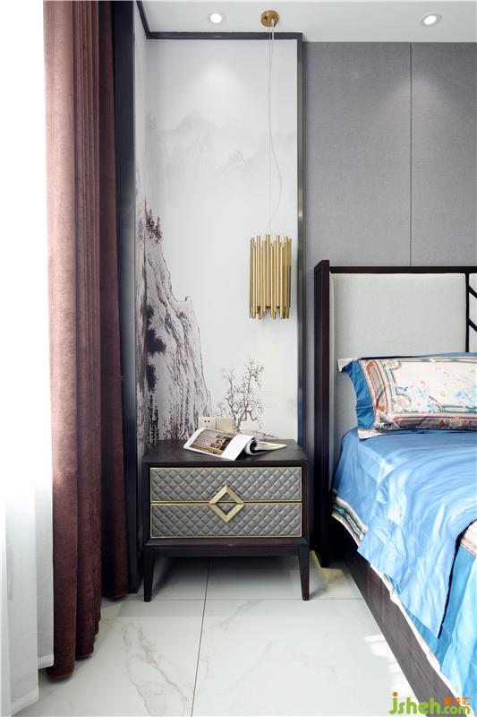 客廳是交友娛樂(lè)中心,影視墻采用墻面暗藏?zé)魩?,中間墻采用高級(jí)山水壁紙飾面,既大方又有氣派,客廳的沙發(fā)背景墻采用金屬線條圍框裝飾,自然暗香的木紋,高貴的香檳金掛飾,清雅高貴的灰藍(lán),在這里感受一茶一世界,一壺一人生東方優(yōu)雅生活的細(xì)膩。中式與現(xiàn)代輕奢結(jié)合,留給我們更多的是意猶未盡的東方韻味。室內(nèi)設(shè)計(jì)師