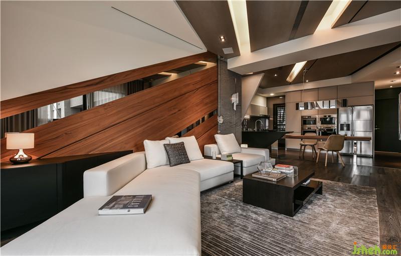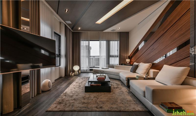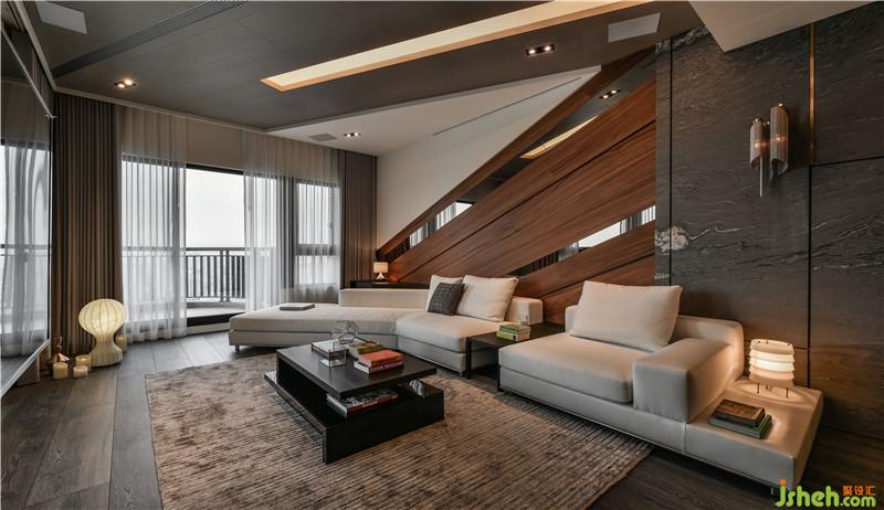 左岸依山傍水,為引入了大量的天然采光與屋外風(fēng)景,客廳以敞開的落地窗連接室內(nèi)外,并將電視懸浮于窗景上,讓戶外風(fēng)景無限延伸。公共空間透過線條的延伸營造出場域的開闊感與廣度,從天花板延續(xù)到長形沙發(fā),讓整個空間產(chǎn)生「內(nèi)在的秩序」,進而制造出空間的張力。利用角度的雕砌與曲線塑造手法,讓整個空間中添增多元面向與穿透感;透過豐富的細(xì)節(jié)使設(shè)計元素相互碰撞、融合并融會于場域之中。將收納柜融入深具藝術(shù)性的墻面中,兼具實用與設(shè)計感,使機能與美感相輔相成。