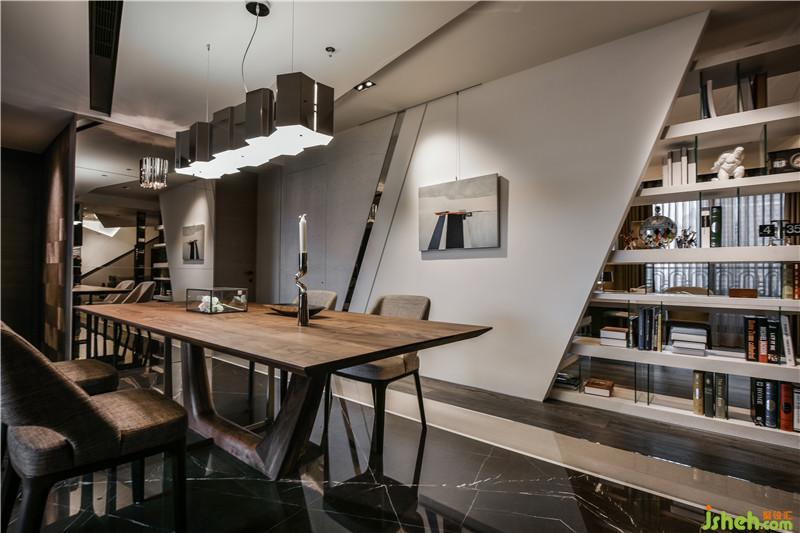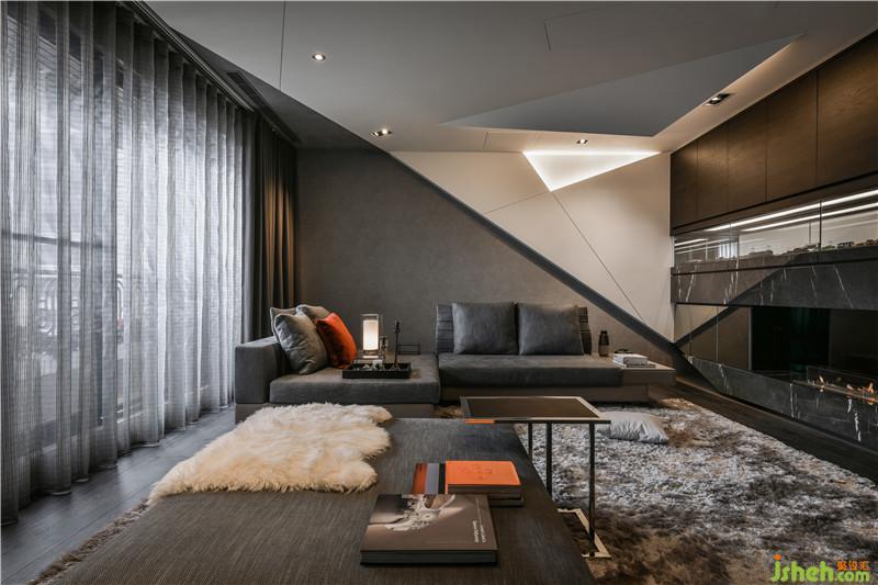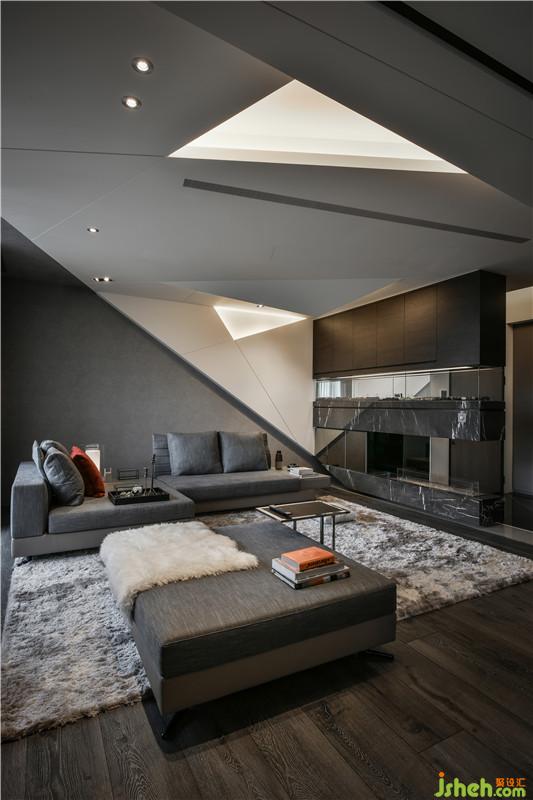 傾斜且富線條變化的天花板與墻面走勢(shì),結(jié)合著各種光線的折射,而帶給屋內(nèi)極富設(shè)計(jì)感的生動(dòng)氣質(zhì),與此同時(shí)也透過在個(gè)線條中的巧妙規(guī)畫,一舉結(jié)合了收納、展示、生活實(shí)用與空間美學(xué)的多重目的。除了各種材質(zhì)特性間的豐富對(duì)話,細(xì)致的鑲嵌工法以及精準(zhǔn)計(jì)算的接合線條,亦為屋內(nèi)中刻畫出各種隱匿而優(yōu)雅的美學(xué)肌理,并以此兼顧實(shí)用與美學(xué)的多重,提出我們對(duì)居家空間的嶄新見解。