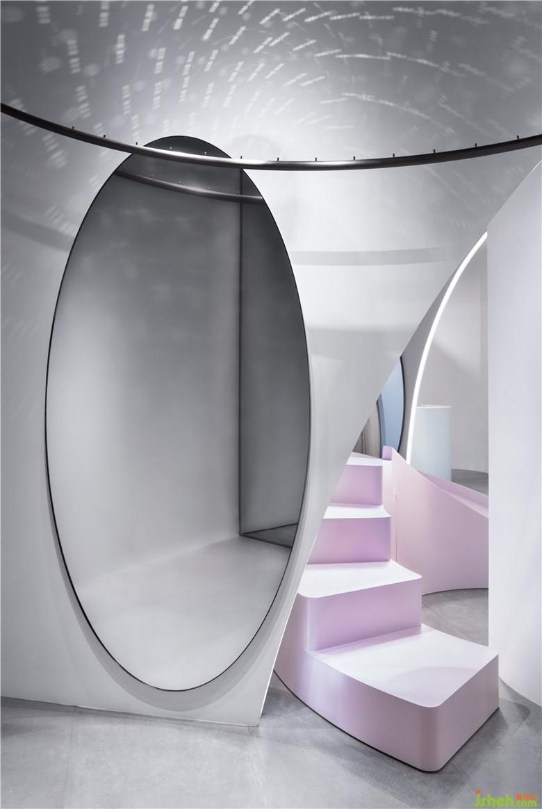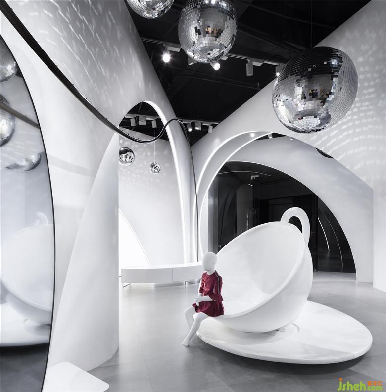 室內(nèi)設(shè)計(jì)師鏡面的巧妙運(yùn)用,給空間增加了更多趣味。幾個(gè)巨大的燈球,折射出夢(mèng)中密林的斑駁光影,無(wú)限神秘又充滿童心。穿衣鏡與空間融為一體,在滿足實(shí)用功能的同時(shí),也為想象力造景,把這里變成了一個(gè)制造夢(mèng)想、販賣快樂(lè)的地方。