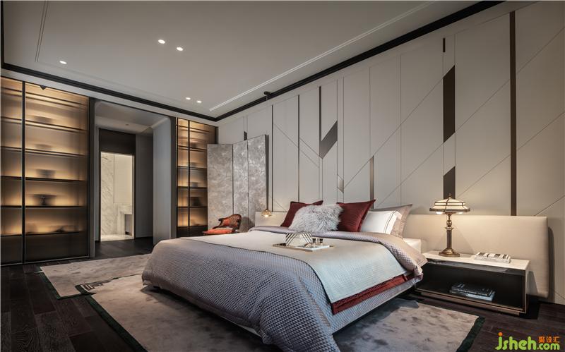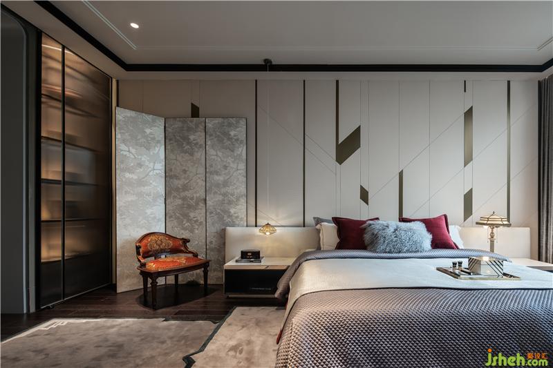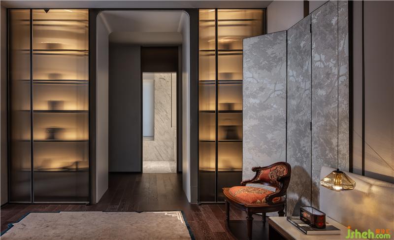 窗外的蒼翠之景,人間四季與人生四季形成巧妙互文,為空間賦予了一副摩登精致之美。光滑的硬皮靠背,杭州樣板房設(shè)計(jì)啞光質(zhì)地的溫潤質(zhì)感素雅而有風(fēng)情,金屬元素的簡約低調(diào),亦讓空間的層次感更為凸顯。地毯提取建筑外立面中的語言,將其鏤刻出來,Arts Déco元素融合空間布局,豐富空間層次,看見過去,也擁抱現(xiàn)在與未來。將民國紳士的雅痞風(fēng)度、當(dāng)代成功人士的生活品味一一呈現(xiàn)。
