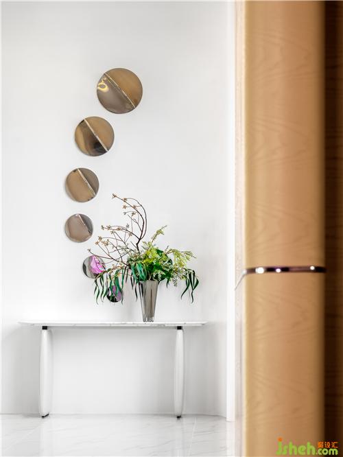 由樓梯而上,猶如跨域另一個空間,一系列轉(zhuǎn)換帶來情感的波瀾起伏。以月相形態(tài)衍生不同材質(zhì)的鏡面裝置,在不同顏色、大小的組合下碰撞出強烈的空間情緒。炙熱、張揚、典雅、藝術(shù),碰撞出雷·布拉德伯里《火星編年史》世界里浪漫玩轉(zhuǎn)的科幻世界。詩意悠然,像訴說著潮汐引發(fā)的時空扭曲,想訴說著空間的怪誕奇趣,像用心感知的生活之光,充滿意味深長的雋永。