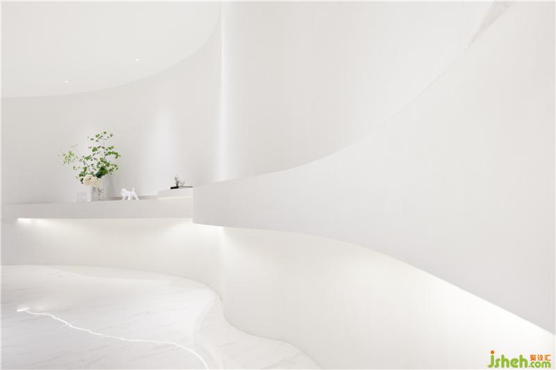 由內(nèi)散發(fā)出的自然光,與柔和室內(nèi)光融合得恰到好處,將原本封閉狹小的空間變成了光與線的世界,減少了冰冷的空間切割感,讓藝術(shù)巧妙融于期間。平滑的線條在冷白色調(diào)的空間內(nèi),營造出溫暖干練的氛圍,像熱情的火星文明,渲染出整個空間的精致與浪漫。