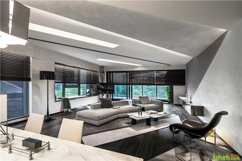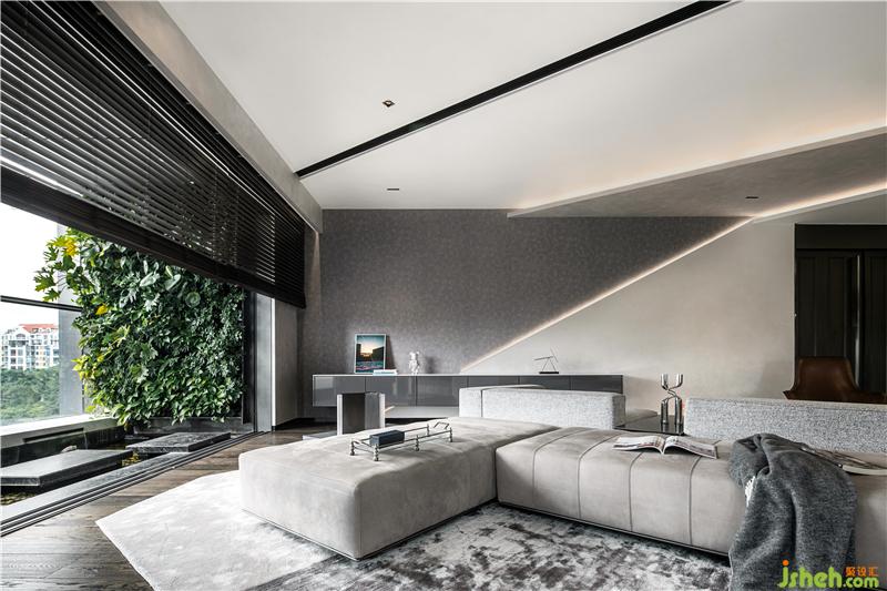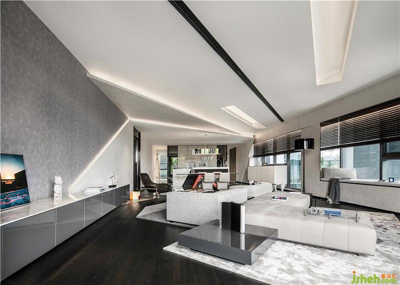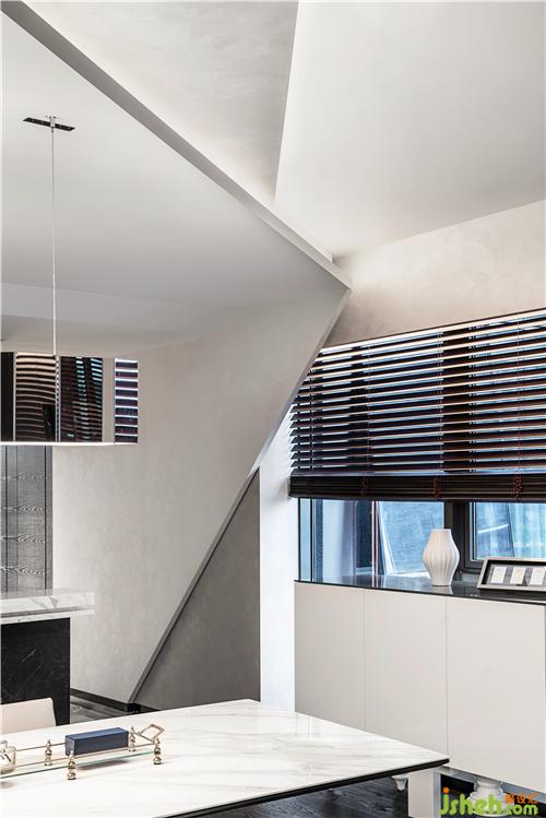 從容灑脫的折線從客廳天花板肆意延伸至此,猶如一幅曠世巨作于此完成最后一劃,視覺上的和諧統(tǒng)一,為深圳豪宅設(shè)計展現(xiàn)的空間形態(tài)與環(huán)境尺度蘊藏微妙的平衡,生活形態(tài)與美學(xué)意識在此無形轉(zhuǎn)化。
