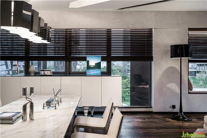 黑色的百葉窗水墨般靜謐流淌,將盈盈的光、綠籬微動的景框入家的空間,光動如影,金色夢幻,繪出與天地融為一體的獨特藝術(shù)品,就此成為最佳的佐餐風(fēng)景線。