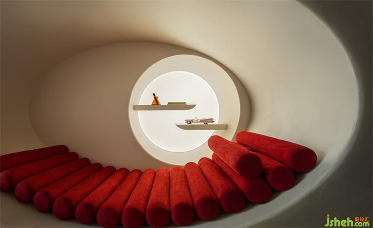 嵌入式手法打造的穴居空間,亦巧妙完成了餐客廳之間的功能銜接。樣板房設(shè)計(jì)將所有的野奢趣意與柔情詩(shī)意,一同化境。在短暫的小憩中,渾然忘卻時(shí)間,也忘卻自己。似原始森林中的穴居者、乘著宇宙飛船遨游太空的旅行家,又似靜謐安魂曲中的一章。