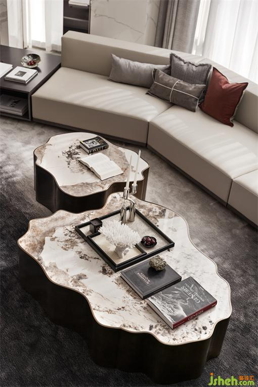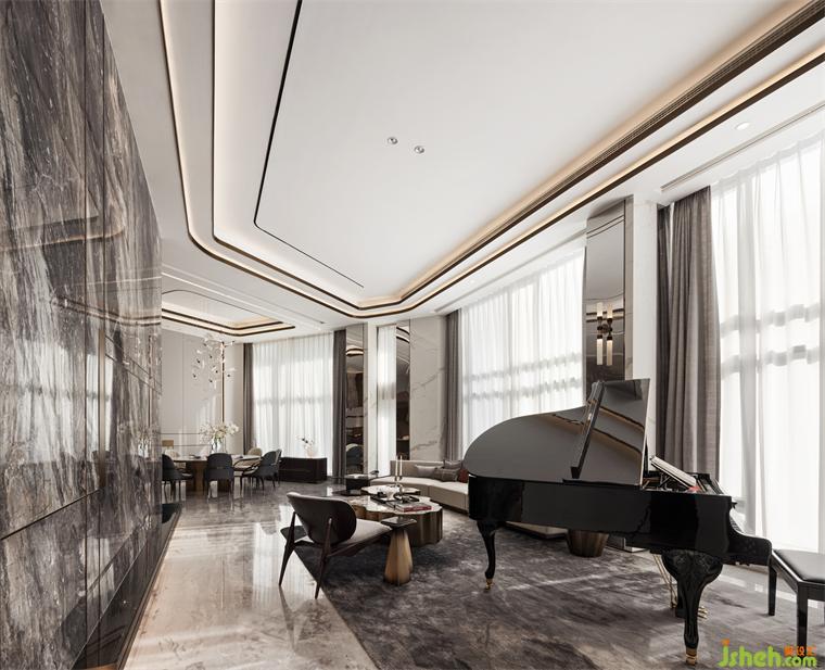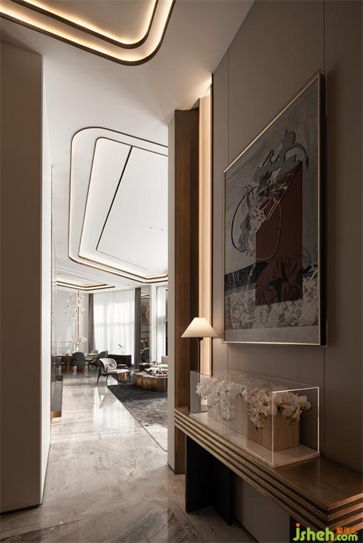 輕盈灑落的餐廳吊燈,自上而下縱向貫穿,為線條感強烈的空間憑添活潑的躍動感。樣板房設(shè)計靈動優(yōu)雅的設(shè)計,柔和了主體材質(zhì)的硬朗感觀,令整個空間的視覺聚焦核心有重點亦有局部細節(jié)的亮點。