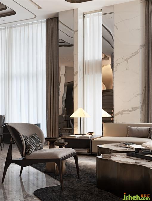 質樸沉穩(wěn)的色調,刪繁就簡中,樣板房設計以不落俗套的現(xiàn)代審美貫穿以東方內核,古典美學的秩序感與現(xiàn)代藝術美感在這里默契地達成一種微妙的平衡。