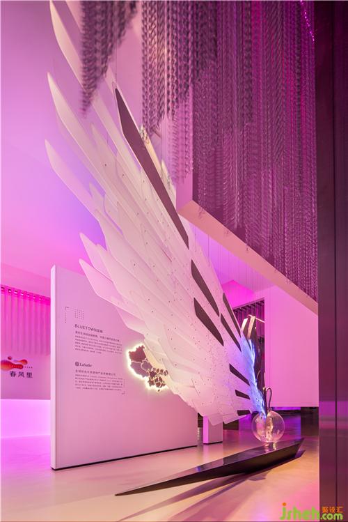 立于開端的藝術(shù)裝置,仿佛是櫥窗里最精致的那款寶石,一件由亞克力羽片、金屬骨架與霓虹燈帶組成的巨型之翼,生活館設(shè)計(jì)仿佛游走于太空中的流光軌跡。