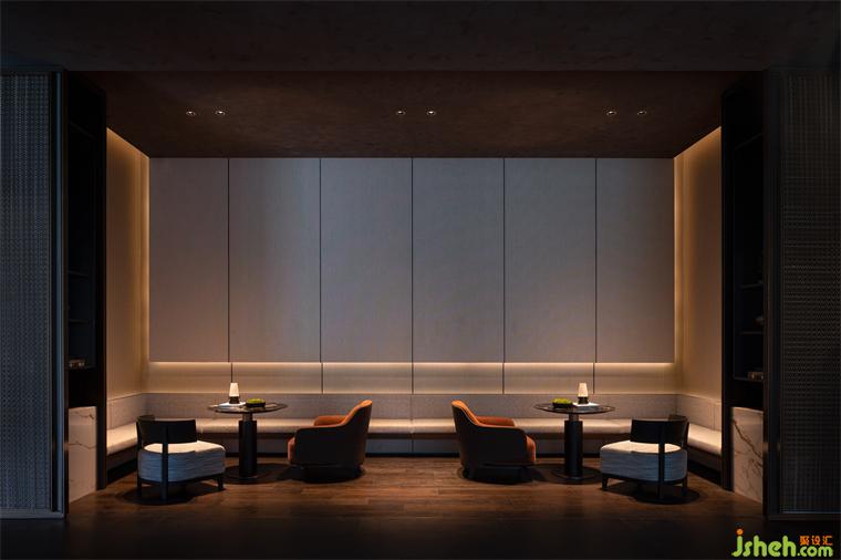 “書藏古今,港通天下”,書吧空間在隱奢的框架中采用沉穩(wěn)低調(diào)的用色,融合隱奢元素和時尚單品,在展示書架與細膩的燈光設(shè)計下,讓人在繁忙與浮躁之中尋得一處精神的憩息所。