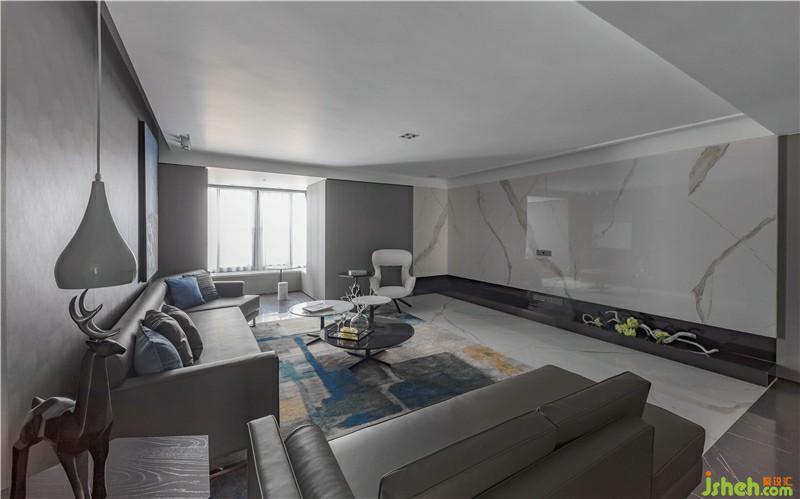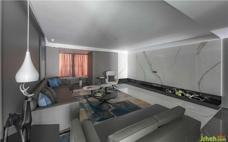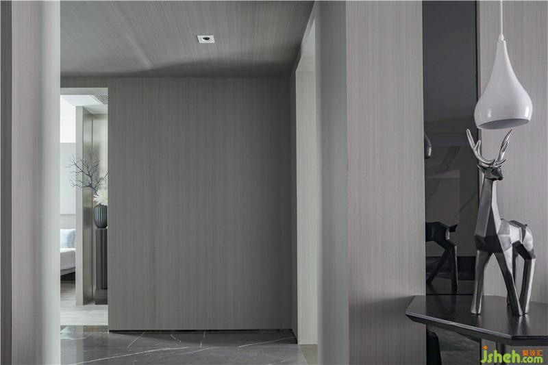 次臥,設(shè)計(jì)師采用深灰色硬包作為背景墻并融入灰色木質(zhì),整體色調(diào)統(tǒng)一柔和。透明的櫥門(mén),左右不對(duì)稱(chēng)的吊燈,使空間層次感提升,帶來(lái)臥室藝術(shù)氣息,也更好的反映了熱愛(ài)藝術(shù)的生活態(tài)度。