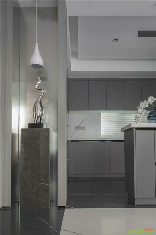 餐廳是黑色寬闊的落地窗帶來(lái)了寬闊的視野,在此用餐又是一種別致的享受,早餐、陽(yáng)光,美好的一天從此開(kāi)始。高級(jí)灰的地磚與大塊大理石瓷磚搭配,冷中帶暖,利落大方,在窗戶(hù)的明亮采光環(huán)境下,讓空間變得更加通透;開(kāi)放式廚房打破傳統(tǒng)固有格局,讓空間的利用率最大化。