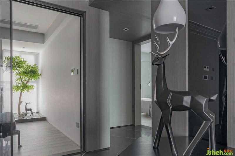 主衛(wèi)以灰色石材紋理的瓷磚打造,搭配白色衛(wèi)浴,一面鏡子,干凈利落,使得空間充滿(mǎn)現(xiàn)代感。盆景擺設(shè)也讓空間增添優(yōu)雅溫馨的氣氛。采用干濕分離設(shè)計(jì),黑色的磨砂門(mén)分割出干濕兩區(qū),讓有限的空間發(fā)揮無(wú)限的功能。
