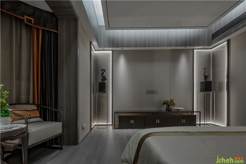 “簡”次臥的設(shè)計并不拘泥于傳統(tǒng)的中式元素,而與現(xiàn)代元素相互并存,以簡約美為主,以其獨有的姿態(tài),營造出簡潔大氣,儒雅的理想休憩之所。