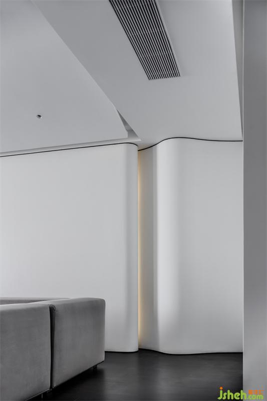 陽光照射在白色墻面和波浪吊頂,