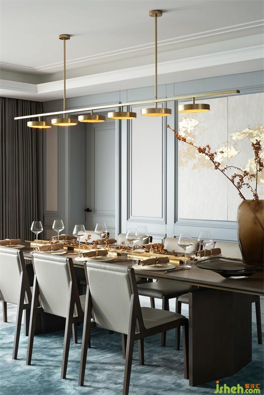 青島樣板房設計為本項目訂制手工竹絲地毯,其圖案及顏色與墻面藍灰色呼應統(tǒng)一,整體彰顯主人品位與高貴的生活方式。