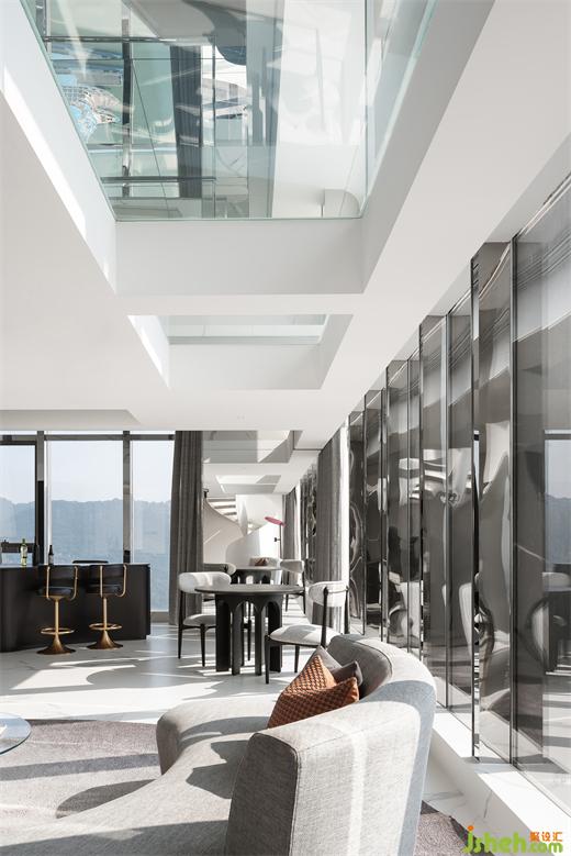 With sunlight streaming into the room, the city and the Yangtze River reflected on the ceiling, and the glass floor serving as a viewing platform, the cityscape of Chongqing is perfectly displayed in your living room.