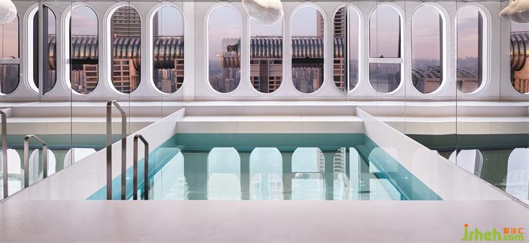 懸置的水晶湯池是為浪漫且勇敢的賓客準(zhǔn)備的,高空酒店設(shè)計(jì)懸浮其中將同時(shí)獲得游魚和飛鳥的雙重體驗(yàn)。