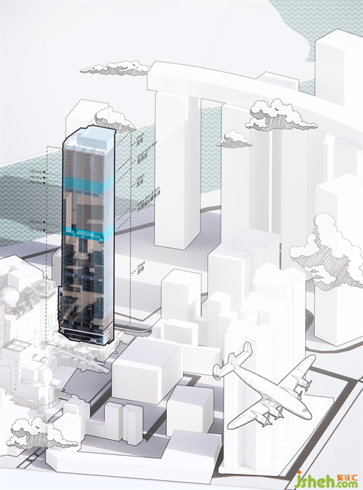 延續(xù)、召喚、幻象、消融、懸浮,作為體驗的邏輯架構,震撼的景觀視野,客、臥分離,創(chuàng)造更舒展的社交休閑空間和更立體的居室體驗,高空酒店設計以云端墅居表達品牌的主張:自由、浪漫、大膽!