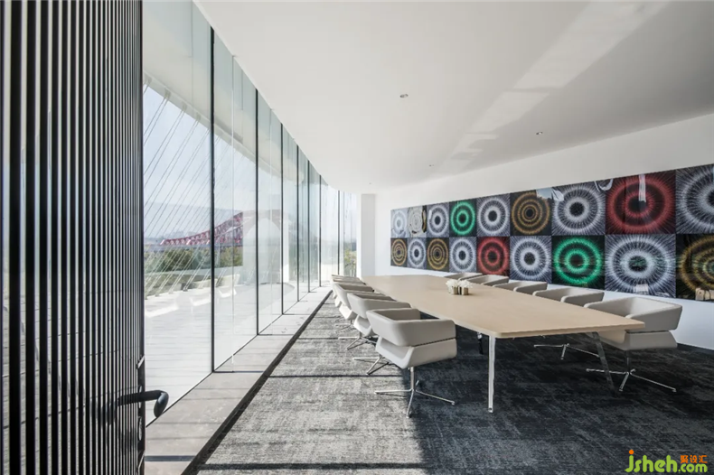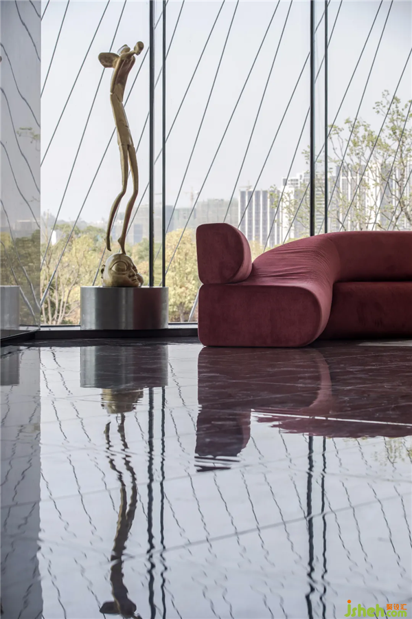 窗外紅色世紀(jì)大橋是城市的象征,設(shè)計(jì)師在空間中植入與外界相呼應(yīng)的色系,室內(nèi)設(shè)計(jì)師回應(yīng)項(xiàng)目的在地性,藝術(shù)品的形、色、意,又構(gòu)成空間磁場的穩(wěn)定形式。