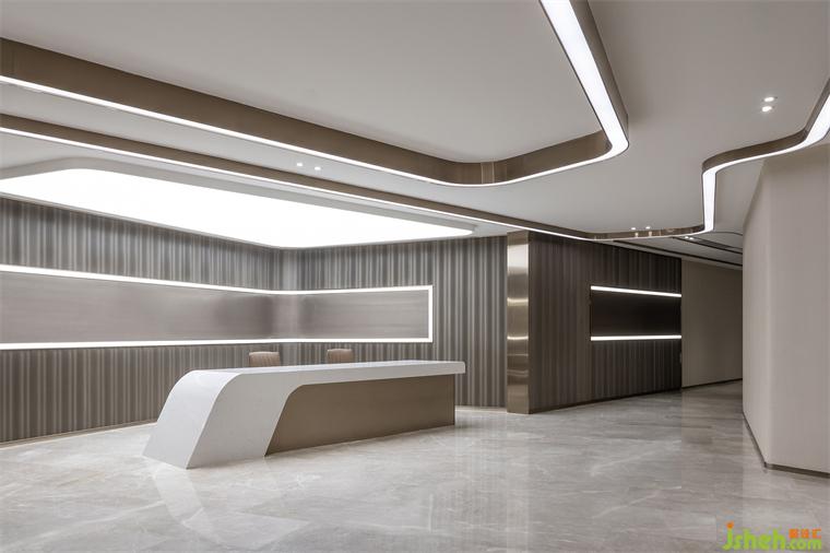 接待空間是對(duì)外區(qū)域以前臺(tái)接待區(qū)為中心,流線設(shè)計(jì)使空間具有引導(dǎo)性。延伸出各接待功能區(qū),可滿足會(huì)議、辦公、洽談會(huì)客等