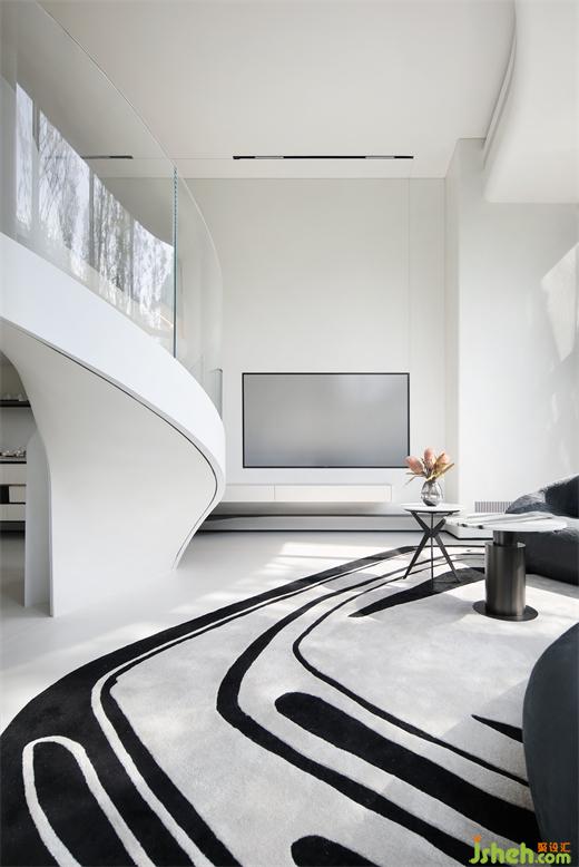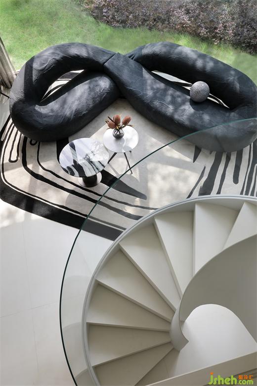 落地窗邊跨層中空的弧形沙發(fā)