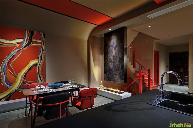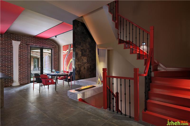 2、設計風格:業(yè)主經(jīng)常出入于各個國家,討論風格時,因為本身都是在美學的相關工作,溝通中一致認為以工業(yè)風為主的情況下,大膽的應用色彩,材料的碰撞。結(jié)構(gòu)的沖擊。產(chǎn)生對美的新認識。別墅裝飾