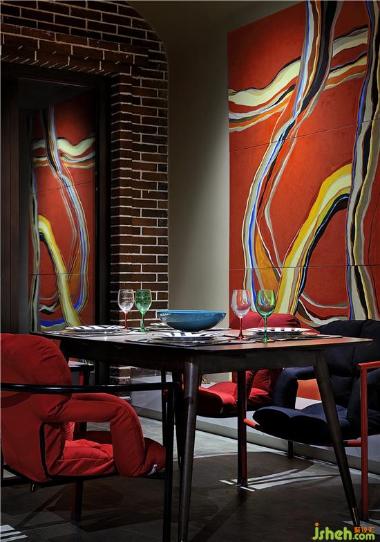 ▲紅色空間帶來(lái)的那種暖意,是整體性的亮點(diǎn)。在原有的色系中,增加了杏色,有助于空間的提升感。