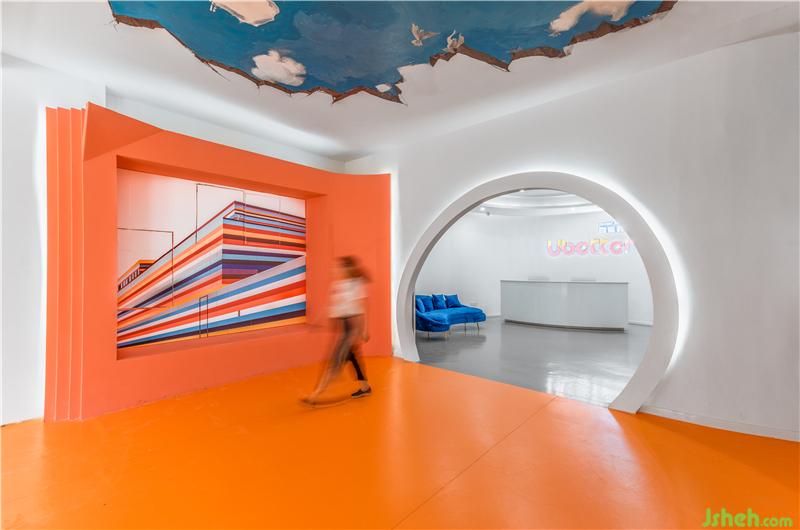 橙色是活力的象征,是高興和歡喜的顏色。圓形的大門在增加安全感的同時(shí),就像是一個(gè)時(shí)空隧道,帶領(lǐng)著孩子們?nèi)ネ鶋?mèng)想的彼岸。裝修設(shè)計(jì)理念下,采用半圓弧的空間中大塊的灰色留白,加上寶石藍(lán)色的沙發(fā)色系的沖撞增加了時(shí)尚感,嚴(yán)肅中不失活潑。