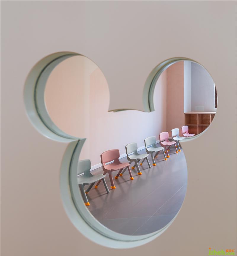 門口米奇和圓形鏤空玻璃設(shè)計(jì),既能隨時(shí)掌握孩子的情況又能增添童趣,用微小的細(xì)節(jié)體現(xiàn)設(shè)計(jì)的藝術(shù)。