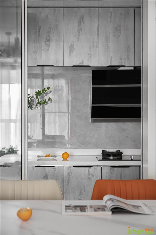 餐廳后則是廚房。廚房作為全家溝通最多的空間之一,是最重要的活動(dòng)空間,其功能不再只是烹飪功能,同時(shí)是社交、溝通的重要橋梁。