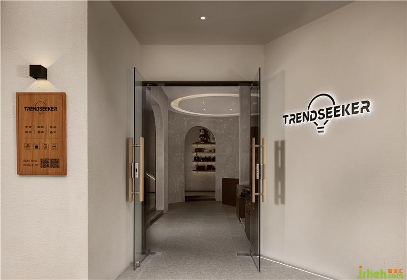 為出離傳統(tǒng)經(jīng)營(yíng)環(huán)境,用設(shè)計(jì)手法傳達(dá)“圓融”觀念。一來(lái)設(shè)置循環(huán)動(dòng)線環(huán)抱前臺(tái),寓意為流水源源不絕,財(cái)源廣進(jìn)。二來(lái)前方留出較為寬敞的行走空間,暗示可咸可甜的社交距離。整個(gè)購(gòu)物過(guò)程親和愉悅,避免了過(guò)度商業(yè)化痕跡。
