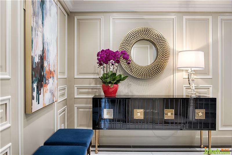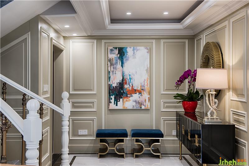 并以木質(zhì)線條直角鑲邊,簡化了傳統(tǒng)古典的繁復(fù)