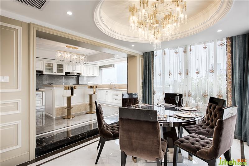 水晶燈獨(dú)特的雕花造型細(xì)細(xì)勾勒摩登古典美。