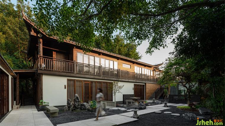 鳳山別院擇址于重慶市火鳳山公園,園內(nèi)之酒肆,其環(huán)境極佳,宛如一方秘境。餐廳設(shè)計(jì)殿宇修竣,庭園翠綠,使人感受大自然之蔚然。
