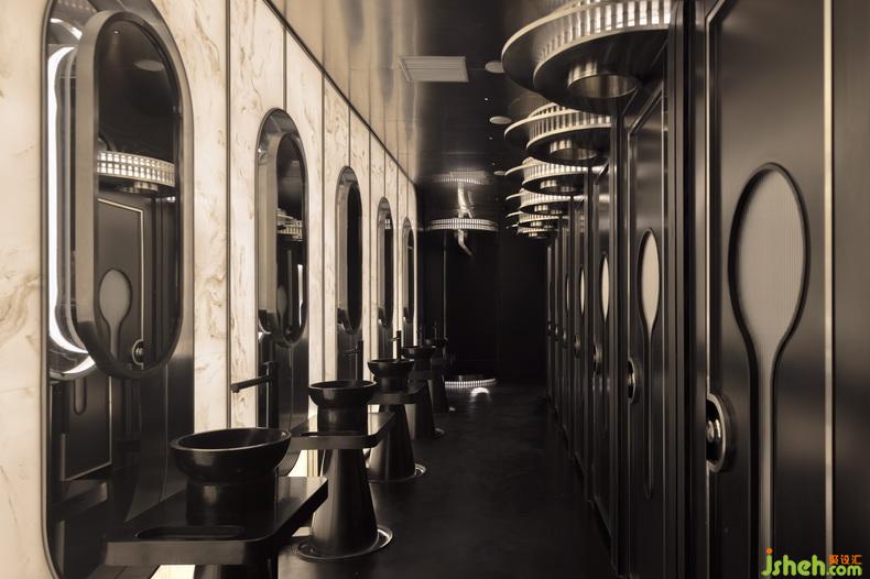 強烈的色彩、簡潔設(shè)計與新材料的結(jié)合,制造透視錯亂的狂歡盛宴,“劇場”概念的加入令視覺游戲更加復(fù)雜。吧臺以退讓式設(shè)計將場地讓渡給“舞臺”,夜店設(shè)計關(guān)注點歸放于人自身以及音樂上。洗手間則以逆市面潮流的復(fù)古美學(xué),沉淀為提供身心緩沖與補給的劇場“后臺”。